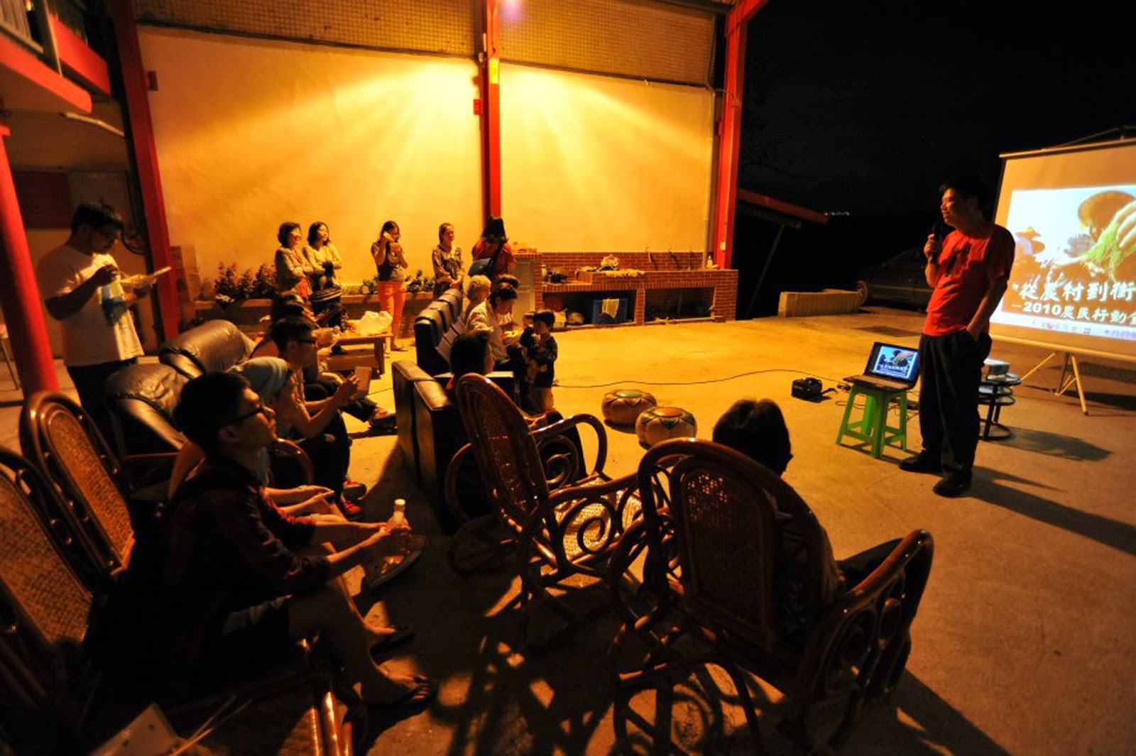 自救會走入淡海鄉間舉辦蚊子電影院,放映土地徵收相關紀錄片。